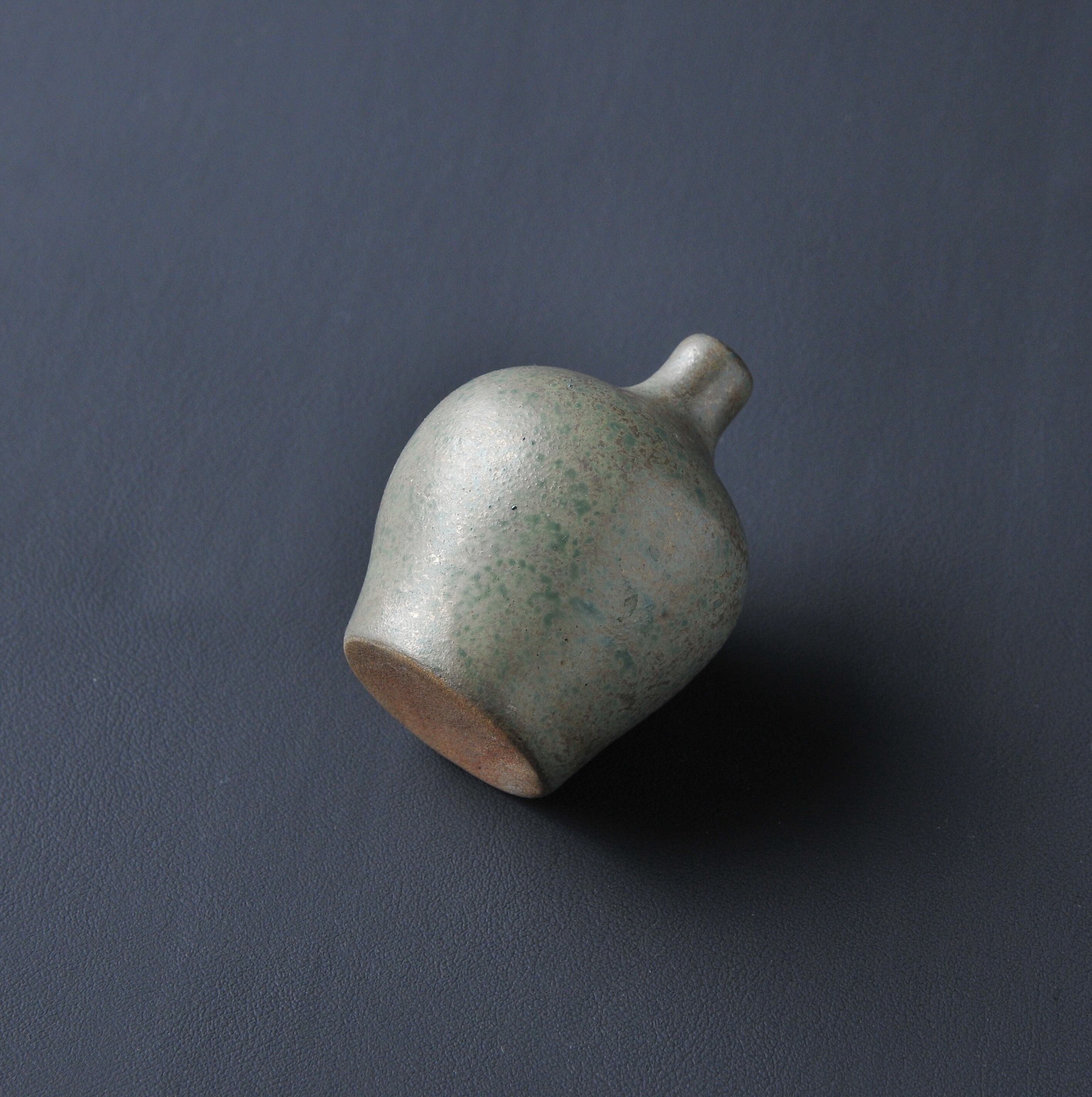 丸型 緑釉 銀彩 花器 小